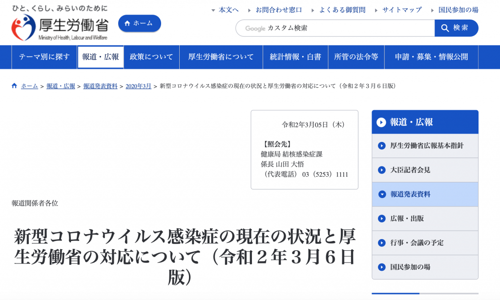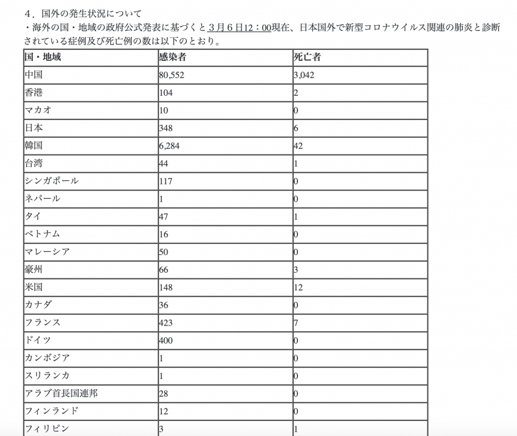 2020年3月6日時点での日本での感染者数は348人、死亡者数6人。