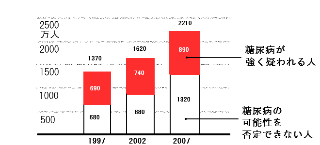 2007年度の時点で2210万人が糖尿病もしくは糖尿病予備軍。